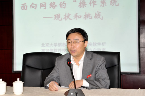 讲座中,梅宏教授指出,长期以来,作为主要软件运行平台的操作系统和中间件主要针对单机和局域网计算平台。互联网的普及和发展为我们提供了一种全球范围的、不断延伸的信息基础设施,形成了一个资源丰富的计算平台,对软件运行平台提出了新的需求。他回顾了操作系统及其发展,分析了互联网时代"操作系统"面临的需求和挑战,介绍了面向网络的"操作系统"研发现状,进而介绍了北京大学在这方面的研究和实践。